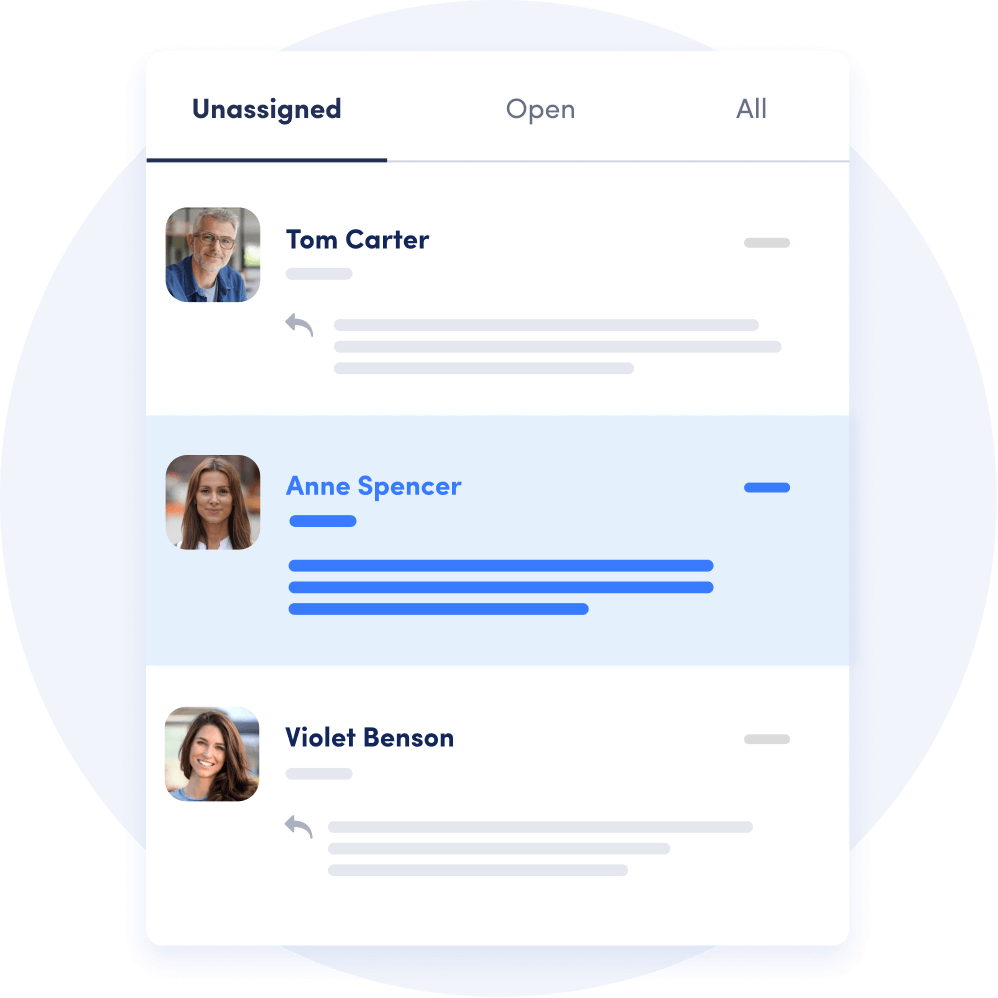 Messagely’s customer support software is powered by a shared inbox that helps you to keep track of all your communications. (We’re talking emails, social media messages, live chat messages, text messages, and more).
